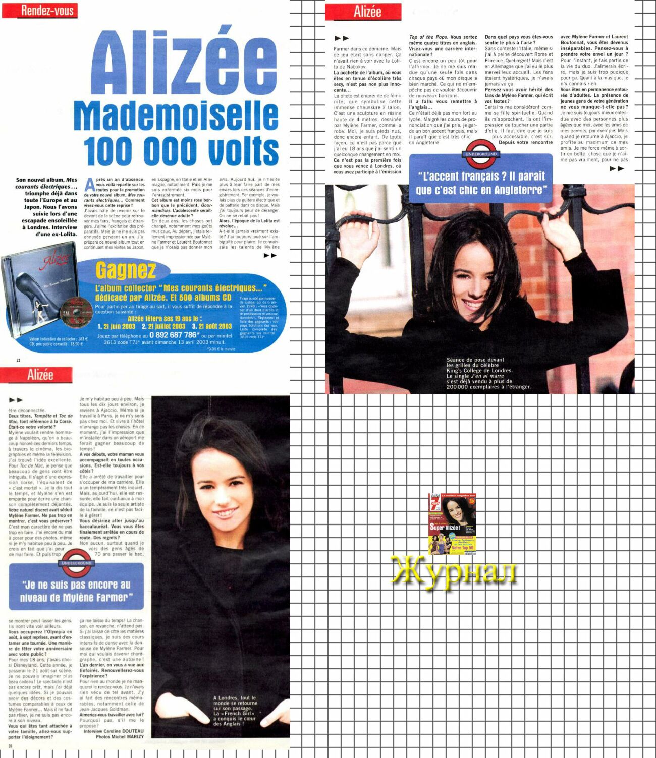 A: За последние два года, много чего изменилось, особенно мои вкусы относительно музыки. Сначала, я была настолько удивлена талантами Милен Фармер и Лоран Бутонна, что не осмеливалась высказывать своё мнение. А сейчас, я могу себе позволить их попросить о каких то изменениях. К примеру, на сей раз я их попросила вставить побольше электронной гитары и барабанов..